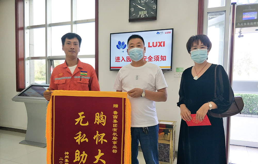 在這個秋風漸涼,秋意漸濃的日子里,魯西集團收獲了一份秋天的感動。9月8日上午,河北神州君順物流有限公司領導,帶著一封感謝信和一面寫著“胸懷大愛,無私助人”的錦旗,專程來到魯西集團,請求約見有機胺事業(yè)部氯化石蠟車間主任馮波,表達對魯西員工救命之恩的感謝。