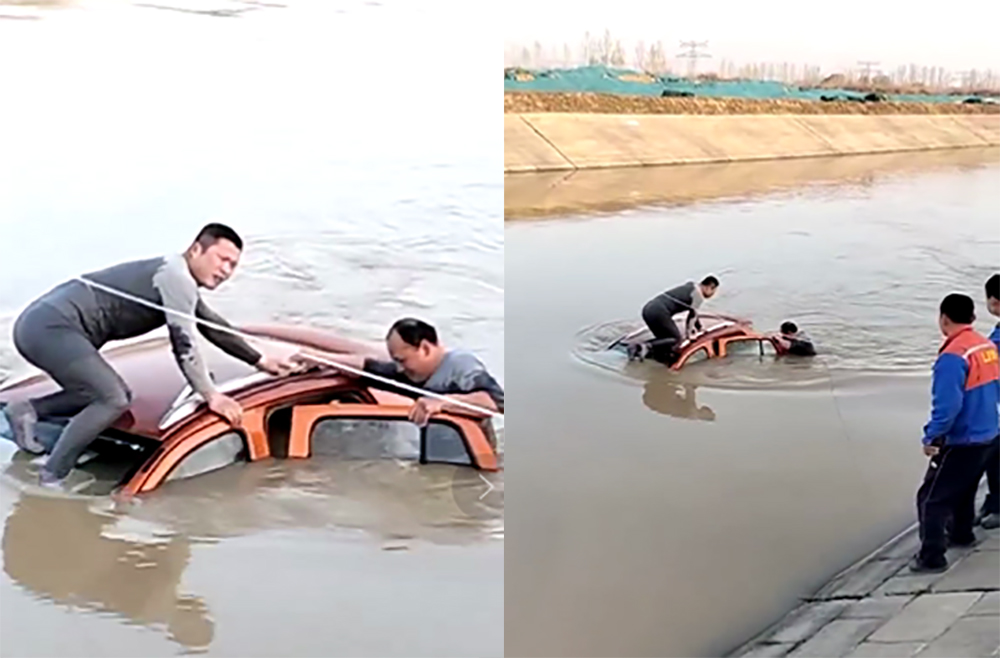 3月28日早6:30,325國(guó)道上車流如織,正是魯西集團(tuán)員工上班比較集中的時(shí)間段。此時(shí),在一干渠河水中,有一輛近乎被水沒(méi)頂?shù)霓I車自上游緩緩漂下。魯西集團(tuán)第二工程事業(yè)部員工劉繼赟、孫慶旺行駛到325國(guó)道一干渠橋時(shí),發(fā)現(xiàn)了這輛在河水中漂浮的轎車。二人隨即停下車,近前查看。但由于河水已近淹沒(méi)車頂,無(wú)法看到車內(nèi)是否有人員存在。二人立即決定下水營(yíng)救。