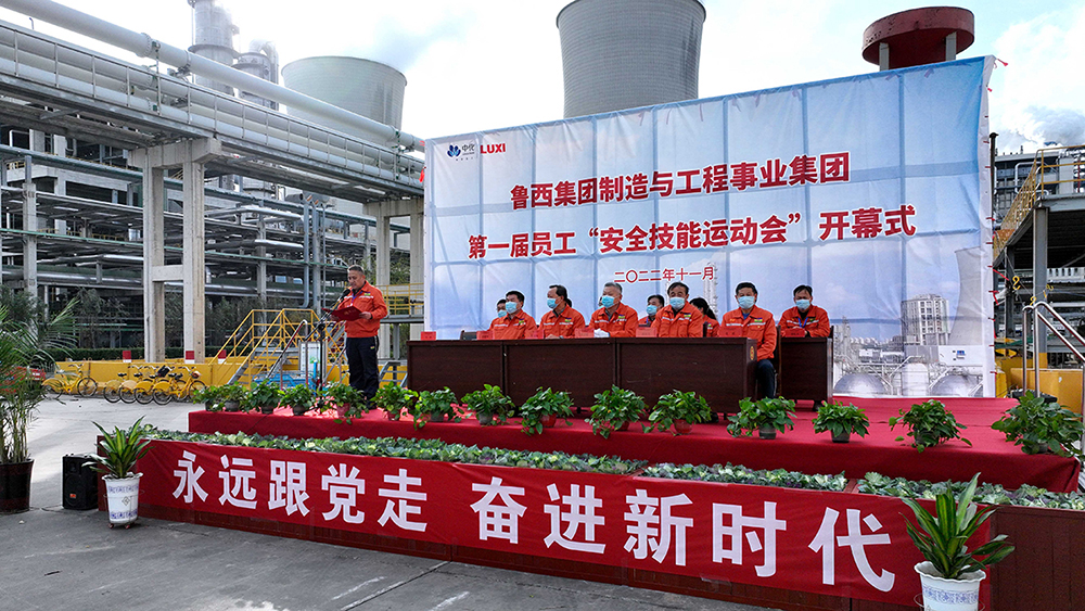 11月13日,魯西集團制造與工程事業集團第一屆員工“安全技能運動會”隆重開幕。儀式開始,伴隨著激昂奮進的運動員進行曲,儀仗隊隊員護衛運動會會旗邁著堅定有力的步伐率先入場,經過主席臺接受檢閱,緊接著由裁判員、各單位運動員組成的10支代表隊,踏著音樂的旋律,邁著整齊的步伐,喊著響亮的口號,依次進入場地。運動會組委會負責人為大賽致開幕詞,預祝本次運動會順利召開;隨后,裁判員、運動員代表分別上臺宣誓。開幕式結束后,在雄壯的國歌聲中,各參賽選手進入比賽場地開始競賽。
