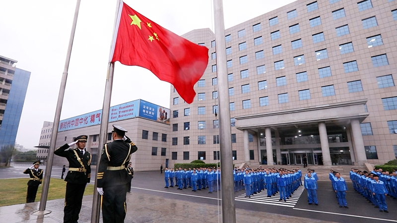 9月30日清晨,天降甘霖,雨潤大地。魯西集團組織職能部門200余名干部員工舉行莊嚴肅穆的升旗儀式。