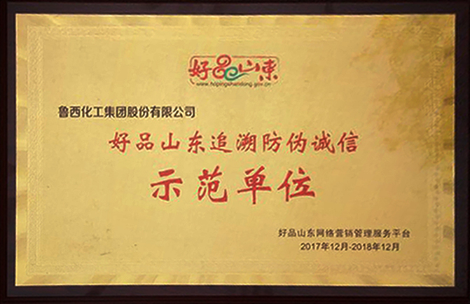 近日,魯西化工集團股份有限公司榮獲“好品山東追溯防偽誠信示范單位”稱號。
