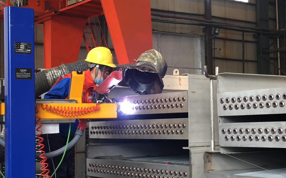 在設(shè)備制作現(xiàn)場,員工們正在熱火朝天的忙碌著。有的在彎制蒸發(fā)冷管束,有的在焊接蒸發(fā)冷箱體,有的在焊接蒸發(fā)冷管箱管頭……。記者現(xiàn)場采訪了一名焊工孟麗娟,她告訴記者:“通過實施定量定價小段包工,我原來每天焊接蒸發(fā)冷管箱230個管頭,現(xiàn)在焊接300個左右,工作效率明顯提高了,工資收入增長了,干勁更足了。”