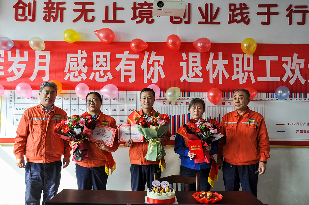 歡送會上,公司經(jīng)理范加剛代表公司領(lǐng)導(dǎo)班子致辭,向吳紅升、張金平、劉慧三名同志幾十年如一日的默默奉獻(xiàn)表示了最衷心的感謝和最崇高的敬意,并頒發(fā)了光榮退休榮譽(yù)證書和鮮花,向他們表達(dá)了美好祝愿并提出殷切希望:希望老職工“離崗不離責(zé)”,常回“家”看看,一如既往支持和關(guān)心公司各項工作,繼續(xù)為公司發(fā)展出謀劃策;“卸任不謝幕”,保持良好心態(tài),照顧好自己,陪伴好家人,享受好天倫之樂,轉(zhuǎn)變好角色,保持好心態(tài)享受豐富多彩的退休生活。充分享受退休后的幸福生活,同時,也希望參加歡送會的在崗職工向老同志學(xué)習(xí),干一行愛一行,愛崗敬業(yè)、樂于奉獻(xiàn),在企業(yè)高質(zhì)量發(fā)展的道路上做出自己應(yīng)有的貢獻(xiàn)。